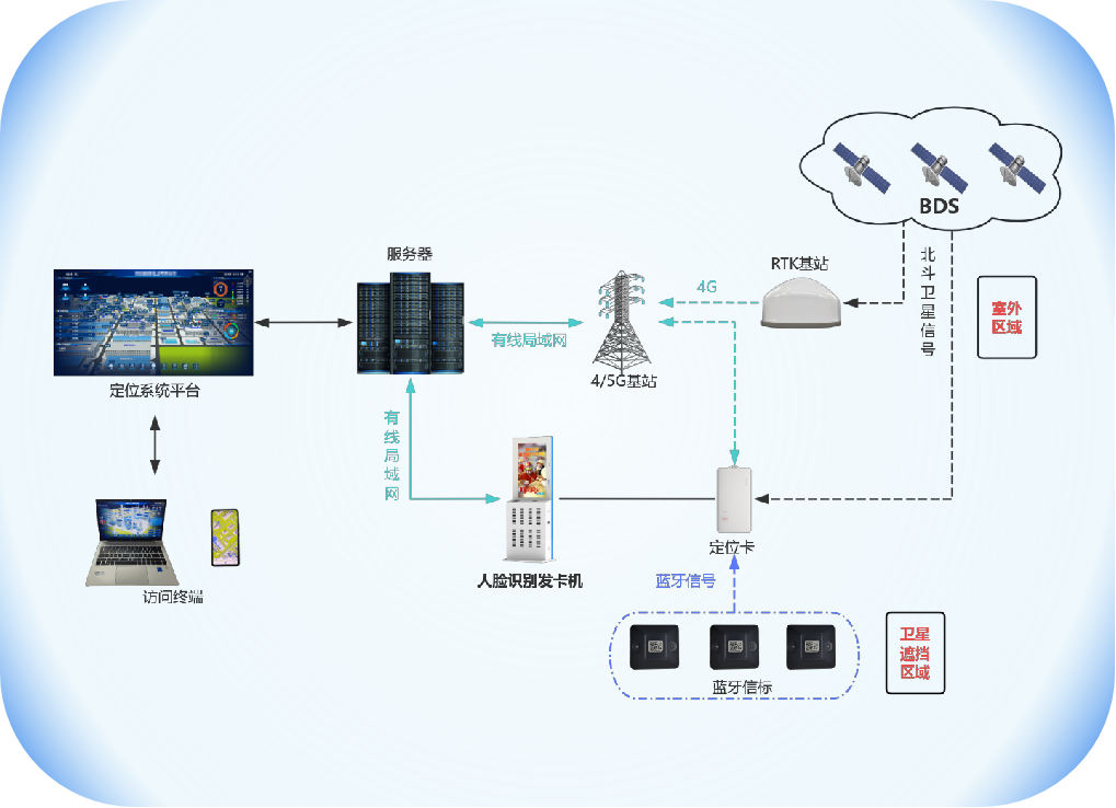 此外,該系統(tǒng)在定位覆蓋的全面性上也展現(xiàn)出部署優(yōu)勢。露天礦山既有開闊的采場,也有狹窄的運(yùn)輸巷道、設(shè)備密集的作業(yè)區(qū)等復(fù)雜區(qū)域。通過合理規(guī)劃RTK基準(zhǔn)站的位置,可以實(shí)現(xiàn)對大面積開闊區(qū)域的全覆蓋;而在信號較弱的復(fù)雜區(qū)域,通過增設(shè)藍(lán)牙信標(biāo),能夠形成密集的定位網(wǎng)絡(luò),確保每個(gè)角落都能被精準(zhǔn)定位。這種“廣覆蓋+高精度補(bǔ)充”的部署模式,無需依賴單一技術(shù)的極限性能,而是通過技術(shù)融合和優(yōu)化部署,實(shí)現(xiàn)了對礦山全區(qū)域的無死角定位覆蓋,滿足了不同作業(yè)場景下的定位需求。