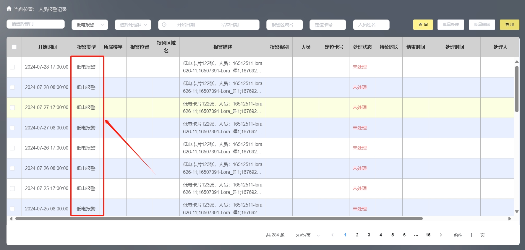 系統(tǒng)中可監(jiān)控人員識(shí)別卡電量、故障情況,電量低的情況下可提醒員工對(duì)定位卡進(jìn)行充電。
