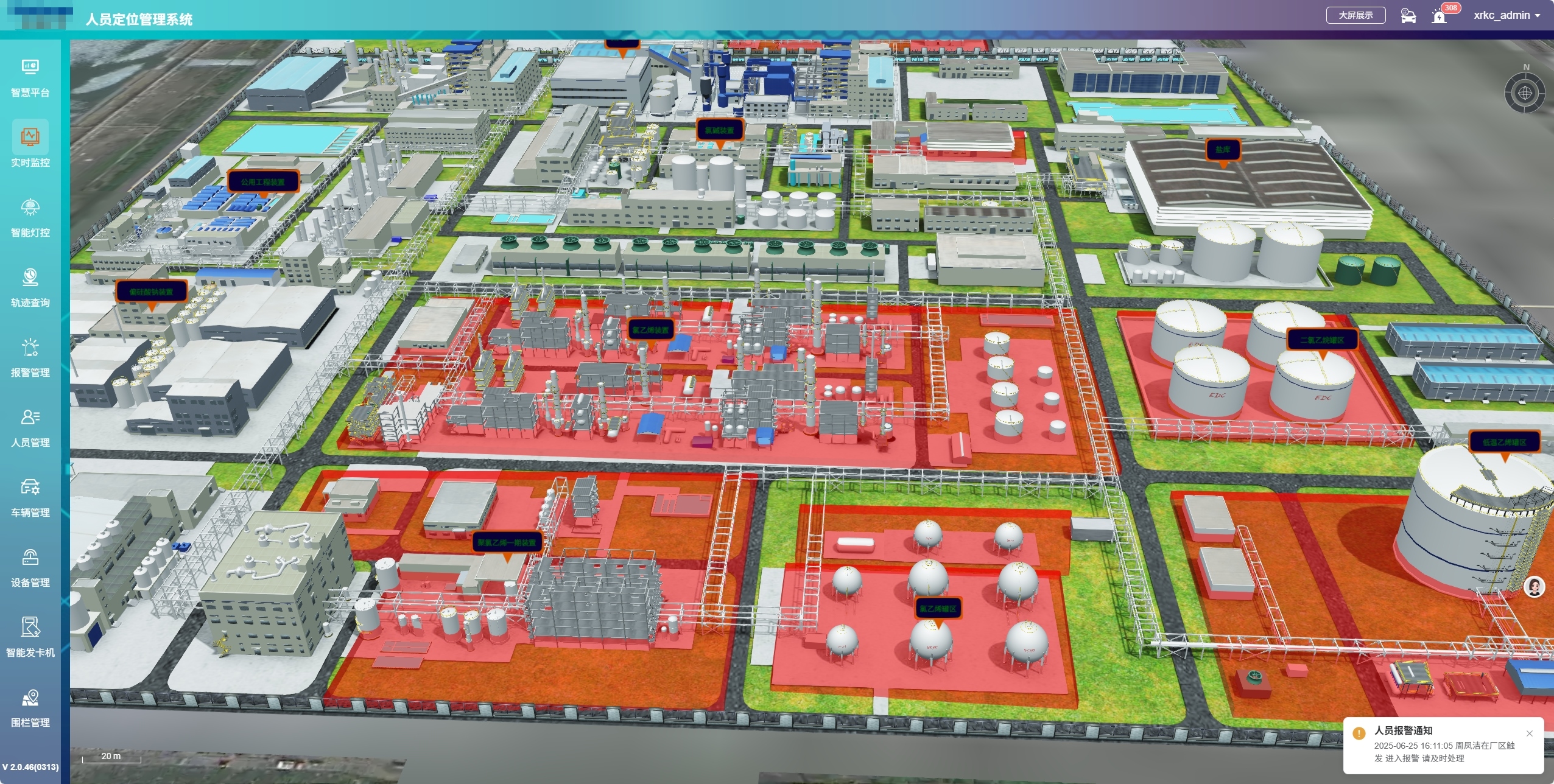 化工廠的生產環境具有高危險性、復雜性等特點,各類化學反應、易燃易爆物質以及復雜的設備布局,給人員安全管理帶來極大挑戰。為了有效管控人員不規范行為,保障作業人員人身安全,部署一套高效精準的人員定位系統至關重要。